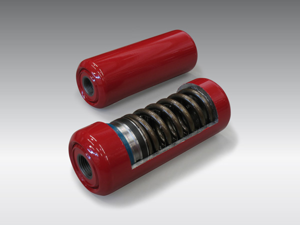 در آکومولاتورهای فنری بجای استفاده از گاز نیتروژن در پشت پیستون در نوع آکومولاتورهای پیستونی از فنرهای قوی استفاده میشود. بدین ترتیب طبق قانون هوک نیروی ایجاد شده توسط فنر با میزان فشردگی آن و با ثابت فنر نسبت مستقیم دارد. بدین ترتیب هرچه فنر فشرده تر شود میزان نیرویی که فنر به پشت پیستون کپسول ازت وارد میکند بصورت خطی بالا می رود.